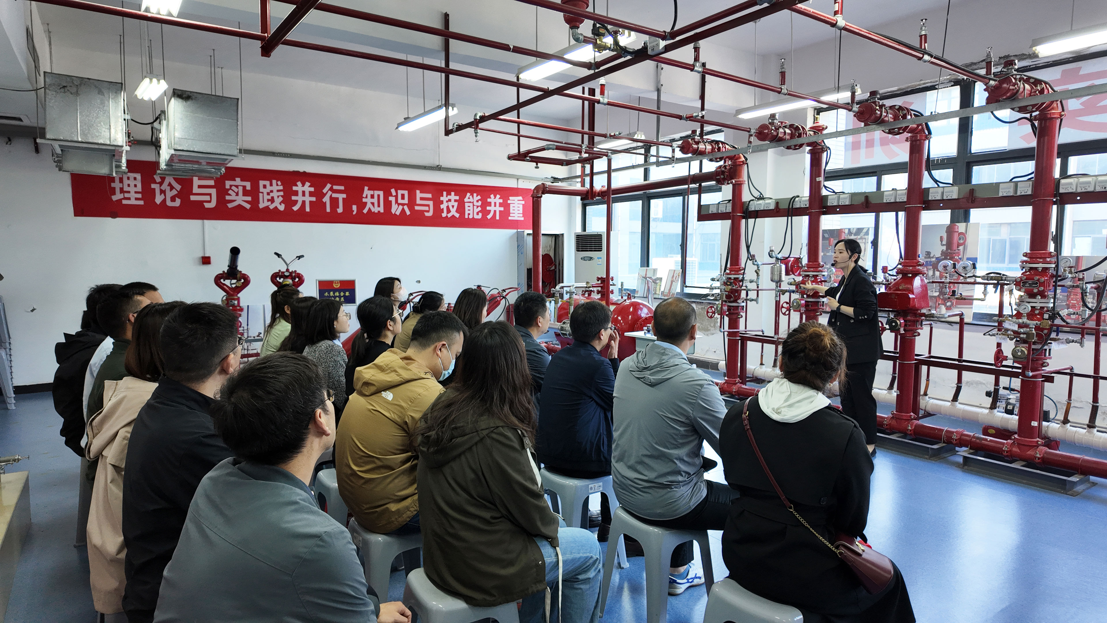 培訓中,具有注冊消防工程師資質的培訓老師運用理論授課、實地講解、多媒體互動等多種教學方式,使參訓職工快速了解并掌握建筑常見消防設施及消防器材的動作原理和操作技能。“授人以魚,不如授人以漁。”在培訓過程中,老師利用學校獨特的現場教學場景,針對九小場所“三合一”現象、違規違章動火作業、常見電氣火災隱患等實際問題進行了深入剖析和講解,并重點強調了日常消防防范管理工作的程序和重點,令大家受益匪淺。